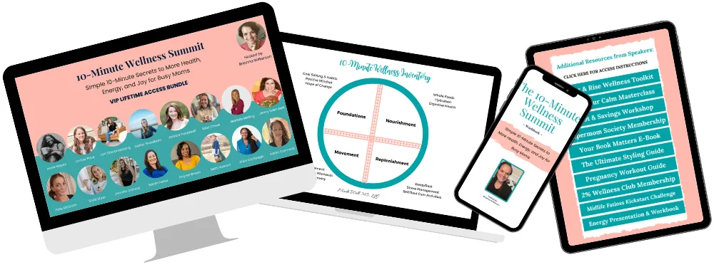 The all-in-one digital toolkit with ten resources designed to give busy moms tools to feel their best every day by supporting their mindset, movement, nourishment, and self-care. Included in the toolkit are:
